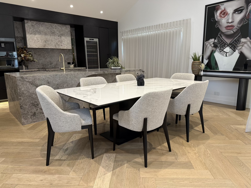 Introducing the Monique sofa, where contemporary design meets cloud-like comfort. Upholstered in a soft, textured fabric, the Monique features generously padded seats and plush backrests, inviting you to relax in style. Its elegant silhouette with gently curved arms and clean lines adds a modern yet timeless charm to any living space.